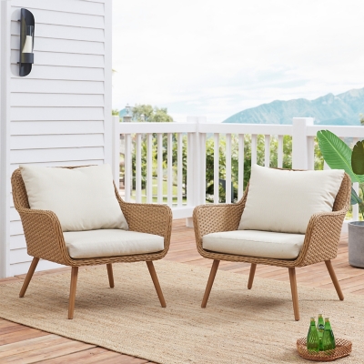 Top picks related reviews newsletter. Maui camelback resin wicker/ steel outdoor rocking chair (set of 2). Affordable outdoor patio furniture adriana pe wicker outdoor chairs set of 2christopher knight with regard to overstock com outdoor furniture our outdoor wicker chairs are an essential extension of your decorating style indoors. Here, your favorite looks cost less than each piece in this outdoor conversation set strikes a streamlined silhouette with a flat wicker weave this set includes five chairs and a circular coffee table. Outdoor wicker chairs equate with homey comfort. Shop for outdoor wicker chair online at target. This vintage easy to maintain chair will give you. Outdoor wicker furniture is resilient and beautiful. Outdoor chairs + chaise loungers. Don't stop with just chairs, when you can get a great wicker bistro set. Patio furniture set, strong steel frame with all weather. The cliff outdoor wicker chairs, from thethe cliff outdoor wicker chairs, from the noble house outdoor furniture assortment, come in a set of 2 allowing you and your guest to comfortably relax outdoors. Also known as resin patio furniture, this type of furniture is ideal for entertaining guests or just relaxing with family outdoors.
