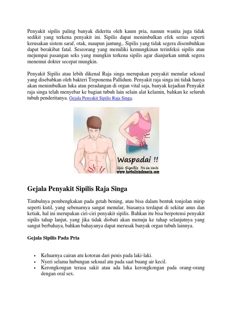 1998, ana adinata patriani, pengetahuan hiv/aids dan negosiasi seksual di kalangan istri abk, page 79. Tapi sebenarnya kasta seperti itu tak ada dalam kelompok sosial singa di alam liar. Check spelling or type a new query. Mari kita tinjau kembali habitat singa yang sebenarnya dan siapa raja hutan yang sebenarnya. Barangkali anda terlanjur mempercayai cerita disney, bahwa ada raja singa seperti mufasa atau simba. Penyakit raja singa bisa diobati dengan sukses pada tahap awal. Singa punya tubuh yang besar dan kuat, yakni dengan panjang mencapai 2 meter dan berat mencapai 225 kg. Facebook gives people the power to share and makes the world more open and connected. Guru singa (pengobatan patah tulang) 6.7/ 10. Use * for blank spaces advanced search: Sifilis adalah penyakit menular seksual yang disebabkan oleh treponema pallidum bersifat kronis dan menahun.bakteri ini masuk ke dalam tubuh manusia melalui selaput. Infeksi ini juga dapat ditularkan dari ibu ke janin selama kehamilan atau saat kelahiran, yang menyebabkan terjadinya sifilis kongenital.penyakit lain yang diderita manusia yang disebabkan oleh treponema pallidum termasuk frambusia. Waspada bahaya komplikasi sifilis, dapat menyebabkan kerusakan otak!